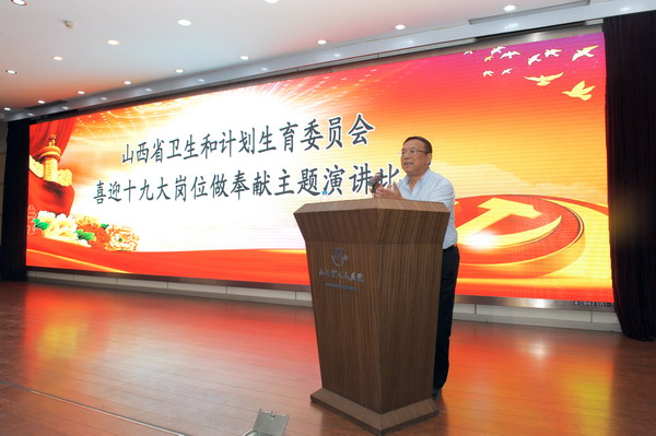 为扎实推进“两学一做”学习教育常态化制度化和维护核心见诸行动主题教育以及我委“强党性、提素质、抓落实”教育活动深入开展,6月16日,省卫生计生委在省人民医院举办“喜迎十九大·岗位做奉献”主题演讲比赛。省卫生计生委党组成员、驻委纪检组组长郭晋刚出席并讲话,委直各联系单位党委书记、纪委书记、党办主任和部分党员代表现场观摩了比赛。 会上,委直15个单位27名选手紧紧围绕“喜迎十九大,岗位做奉献”这个主题,结合各自的工作岗位特点,用真挚的情感和生动的语言讲述着自己身边发生的可歌可泣的感人事例,诉说了卫生计生工作者矢志不渝投身党的卫生计生事业,弘扬了“敬佑生命、救死扶伤、甘于奉献、大爱无疆”的职业精神,演讲感人至深,催人奋进,会场不时响起热烈的掌声。 会上,郭晋刚作重要讲话,他指出,这次主题演讲比赛既是为了庆祝中国共产党成立96周年,也是我委全面推进“两学一做”学习教育常态化制度化、开展维护核心见诸行动主题教育的一项重要内容。通过比赛,集中展示了全委5000多名共产党员的良好精神风貌,进一步激发全委广大党员干部在医疗卫生领域的各个岗位上奋发进取、干事创业、为民服务、乐于奉献的积极性和主动性。演讲比赛达到了宣传先进、鼓励先进、争创先进的目的。希望委直联系各单位以此次活动为契机,大力选树典型、立好标杆,弘扬他们的先进事迹和崇高精神,充分发挥共产党员的示范引领作用,进一步推动全省卫生计生事业稳步向前发展。 他希望,全委广大党员干部以先进典型为榜样,进一步增强政治素质,锤炼过硬作风,提高业务能力,以更加饱满的热情、更加昂扬的斗志、更加有力的措施,全身心投入到卫生计生各项工作中去,为建设健康山西作出更大的贡献,以实际行动和出色业绩迎接党的十九大胜利召开。