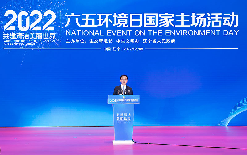 6月5日,2022年六五环境日国家主场活动在辽宁省沈阳市举行。中共中央总书记、国家主席、中央军委主席习近平发来贺信,向活动的举办表示热烈的祝贺。中共中央政治局常委、国务院副总理韩正在活动开幕式上宣读了习近平的贺信并讲话。