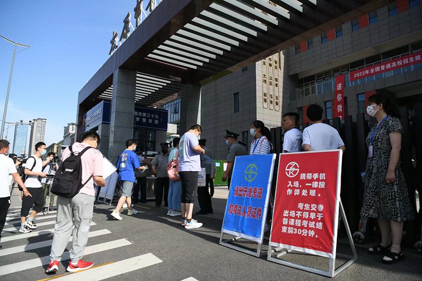 6月7日,2022年普通高等学校招生全国统一考试开考!图为太原市三十七中考点,考生信心满满步入考场。据了解,省城各考点学校已进行了消毒、通风等处理,电子监控系统运行正常,各项工作秩序井然。