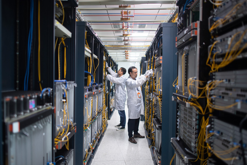 6月2日,在位于湖北省武汉市的烽火通信科技股份有限公司5G承载实验区,技术人员在进行功能测试工作。