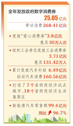2月8日,从省商务厅传来消息,2022年,全省消费促进工作成效显著。努力克服疫情影响,围绕汽车、家电、家居家装等重点商品消费,全年发放政府数字消费券25.05亿元,带动消费268.41亿元。 这一年,我省还发放“爱心消费券”3.8亿元,惠及30万人次。组织9844个工会单位发放工会消费券3.71亿元,惠及131.42万人。省商务厅组织开展了“晋情消费 品质生活”促消费活动、“6·18”“双11”“双12”网络促销活动、“品鉴山西美食·晋享山西味道”餐饮品牌推广活动。支持各市开展汽车促消费活动,累计发放汽车补贴6.49亿元,拉动汽车消费160.56亿元。实施电商主体培育工程,开展省级直播电商示范创建,推动网络零售成为消费新增长点。打造了7个省级夜经济试点城市、18个省级夜经济生活集聚区,太原市被确定为全国“一刻钟便民生活圈”试点城市。第三批认定22个“三晋老字号”,省级以上老字号达到91个。完成了15个大型农贸市场改造工作。大力发展乡村e镇,确定了清徐中国醋都等100个乡村e镇,下拨4.1亿元扶持资金。积极开展县域商业体系建设,争取中央扶持资金1.14亿元。新能源汽车零售额99.4亿元,同比增长96.7%。 2023年,如何全面恢复和扩大消费?省商务厅将把恢复和扩大消费摆在优先位置,从供给端发力,增强消费能力,改善消费条件,创新消费场景。加快出台促消费一揽子政策措施和行动计划,从加快推动消费复苏、持续促进大宗商品消费、加快培育新型消费、提升城市商业体系、深化县域商业建设行动、打造乡村e镇发展平台、推进电子商务体系与快递物流体系贯通发展等方面着力,推动消费和商贸服务业加快发展。