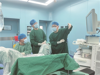 山西医科大学第一医院援大宁县医疗集团医疗队庞建智(右一)指导前列腺电切术(资料图片)。