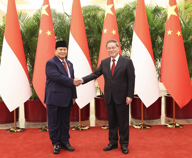 国务院总理李强4月2日上午在北京人民大会堂会见印度尼西亚当选总统普拉博沃。 李强表示,近年来,在两国元首共同引领下,中印尼关系快速发展,开启了共建中印尼命运共同体新篇章。普拉博沃阁下在当选后首访就来到中国,再次彰显两国深厚友谊。昨天,习近平主席同阁下就事关中印尼关系长远发展的问题进行了深入沟通,达成一系列重要共识。中方愿同印尼一道,保持高水平战略互信,深化全方位互利合作,推动中印尼命运共同体建设不断走深走实,取得更多共赢成果,更好造福两国人民。 4月2日上午,国务院总理李强在北京人民大会堂会见印度尼西亚当选总统普拉博沃。 李强指出,中方愿同印尼保持高层交往良好势头,用好各层级对话机制,加强政策沟通协调。双方要进一步加强“一带一路”倡议同印尼发展战略对接,加快推进“区域综合经济走廊”和“两国双园”等重点项目建设,在深化农、林、渔等传统领域合作的同时,拓展数字经济、绿色经济等高新技术和新兴产业合作,加强减贫发展、乡村振兴等民生领域交流合作。中方愿同印尼加强在联合国、东亚合作机制等多边领域沟通协作,共同维护广大发展中国家利益,捍卫国际公平正义,推动全球治理朝着更加公正合理的方向发展,为地区和世界繁荣稳定作出积极贡献。 普拉博沃表示,印尼同中国交往历史悠久。印尼赞赏中方对于印尼和印尼人民的尊重和友好,感谢中方给予印尼有力支持和帮助。我当选后首次正式访问就来到中国,致力于巩固两国友谊与合作,推动两国关系提质升级。印尼新政府钦佩中国取得的发展成就,愿借鉴中方经验,同中方进一步深化基础设施建设、农业、扶贫、民生、绿色经济等领域合作,构建更加紧密的双边关系,为地区和世界和平与发展作出积极贡献。 吴政隆参加会见。