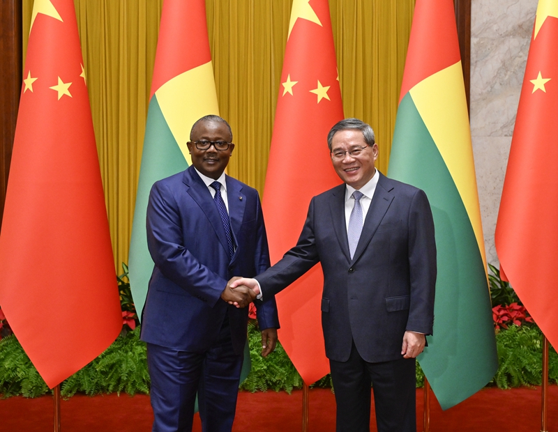 国务院总理李强7月10日上午在北京人民大会堂会见来华进行国事访问的几内亚比绍总统恩巴洛。