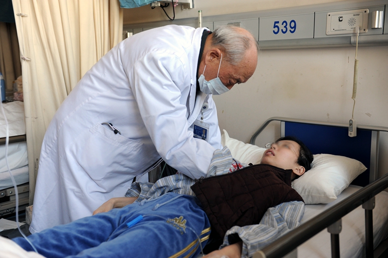 瑞金医院终身教授王振义在上海瑞金医院为病人看病(资料照片)。