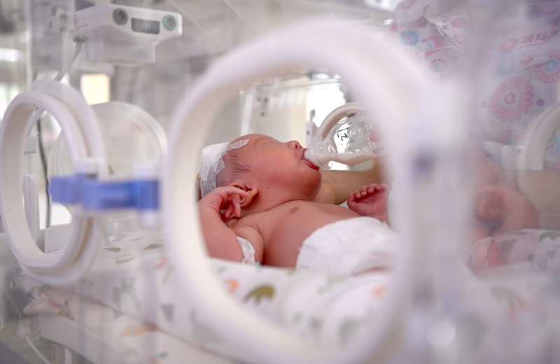 2024年6月1日,在西安国际医学中心医院新生儿科病房,护士为新生儿喂奶。