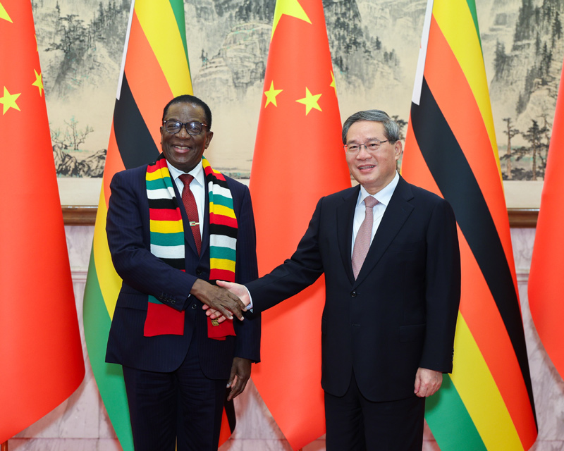 9月3日下午,国务院总理李强在北京钓鱼台国宾馆会见来华出席中非合作论坛北京峰会并进行国事访问的津巴布韦总统姆南加古瓦。