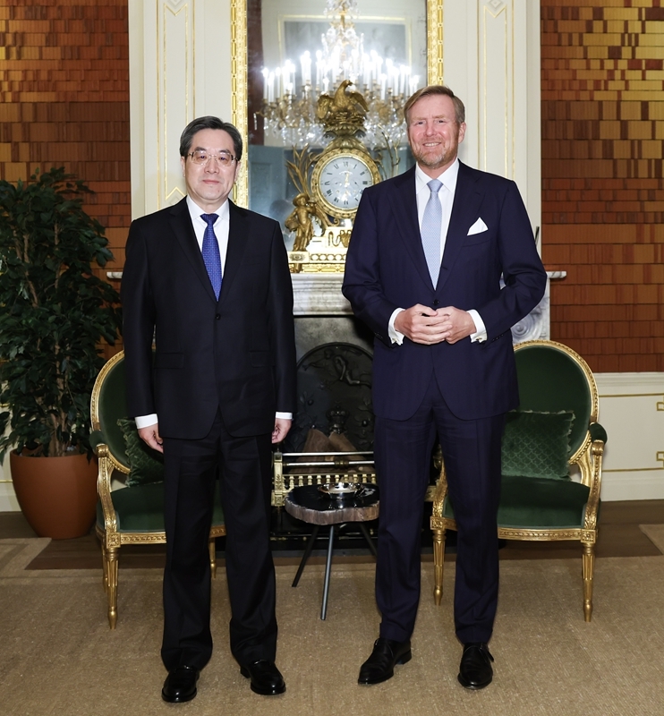 1月22日至23日,中共中央政治局常委、国务院副总理丁薛祥应邀访问荷兰,在海牙分别会见荷兰国王威廉-亚历山大、首相斯霍夫、副首相兼气候与绿色增长大臣赫尔曼斯。 丁薛祥转达习近平主席和彭丽媛教授、李强总理对威廉-亚历山大国王和马克西玛王后、斯霍夫首相的亲切问候。威廉-亚历山大、斯霍夫表示感谢,并请丁薛祥转达对习近平主席和彭丽媛教授、李强总理的良好祝愿。 1月22日至23日,中共中央政治局常委、国务院副总理丁薛祥应邀访问荷兰。这是当地时间1月22日晚,丁薛祥在海牙会见荷兰国王威廉-亚历山大。 丁薛祥说,中荷建交几十年来,尽管国际形势风云变幻,两国关系始终保持良好发展势头。在习近平主席和荷方领导人战略引领下,中荷开放务实的全面合作伙伴关系稳步提升,各领域合作成果丰硕,为两国和两国人民带来福祉。中方愿同荷方进一步加强沟通,增进互信,推动双边关系取得更大发展,助力两国加快实现各自发展目标。 丁薛祥强调,中荷都是开放型世界经济的受益者、支持者。双方坚持相互尊重、开放合作,走出了一条互利共赢道路。中国坚持以高水平对外开放促进高质量发展,欢迎荷兰企业扩大对华合作,希望荷方继续为中国企业提供公正、公平、非歧视的营商环境,维护双方共同利益和全球产供链稳定畅通,实现优势互补、共享机遇、共同发展。 丁薛祥表示,中荷气候治理理念相通,长期开展良好合作。双方要强强联合,推动绿色创新发展,开展更多联合研发,巩固气候适应合作特色优势,探讨开展更多三方合作。坚定维护多边主义,共同构建公平合理、合作共赢的全球气候治理体系,促进中欧绿色领域开放合作。 丁薛祥表示,今年是中国同欧盟建交50周年。中方愿同欧方加强对话、深化合作,促进中欧关系健康稳定发展,希望荷方为此发挥建设性作用。 威廉-亚历山大表示,2014年,习近平主席成功访荷,双方共同确定了荷中开放务实的全面合作伙伴关系新定位,为双边关系注入强劲动力。荷方珍视双方互信和友谊,愿同中方深化合作,共同推动荷中关系持续取得新进展。面对当前地缘政治冲突,各国应坦诚沟通、寻求共识、团结协作,共同应对全球挑战。 斯霍夫表示,荷中关系对荷方十分重要,荷方钦佩中国发展成就,视中国为稳定的伙伴,愿同中方加强对话,增进理解互信,拓展水利建设、绿色发展、医疗卫生等各领域务实合作。荷兰以贸易立国,开放攸关荷兰的未来。荷方愿同中方一道,维护自由贸易,促进开放合作。 赫尔曼斯祝贺中方环境保护和绿色发展取得的成就,赞赏中方为落实《巴黎协定》所作努力和贡献,期待加强清洁能源、绿色转型、循环经济、气候适应等合作,携手推动《联合国气候变化框架公约》第30次缔约方大会取得积极成果。