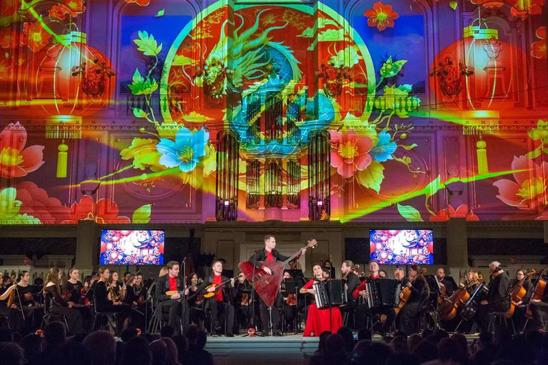 2月6日,俄罗斯音乐家在圣彼得堡举行的中俄新春音乐会上表演。
