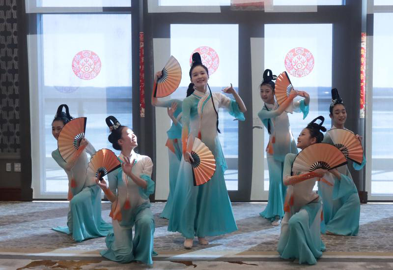 1月29日,来自北京的人大附中艺术团在美国艾奥瓦州马斯卡廷举办的新春聚会上表演。