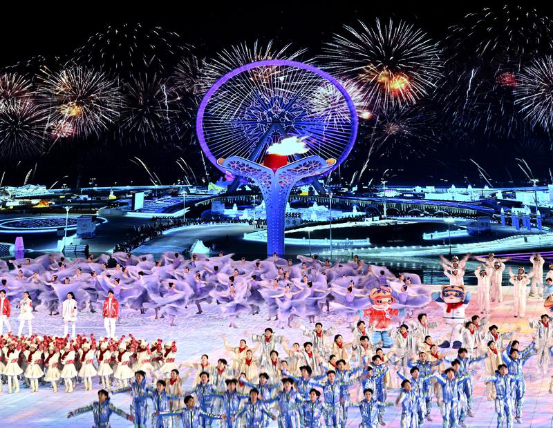 2月7日,演员在哈尔滨举行的第九届亚洲冬季运动会开幕式上表演。
