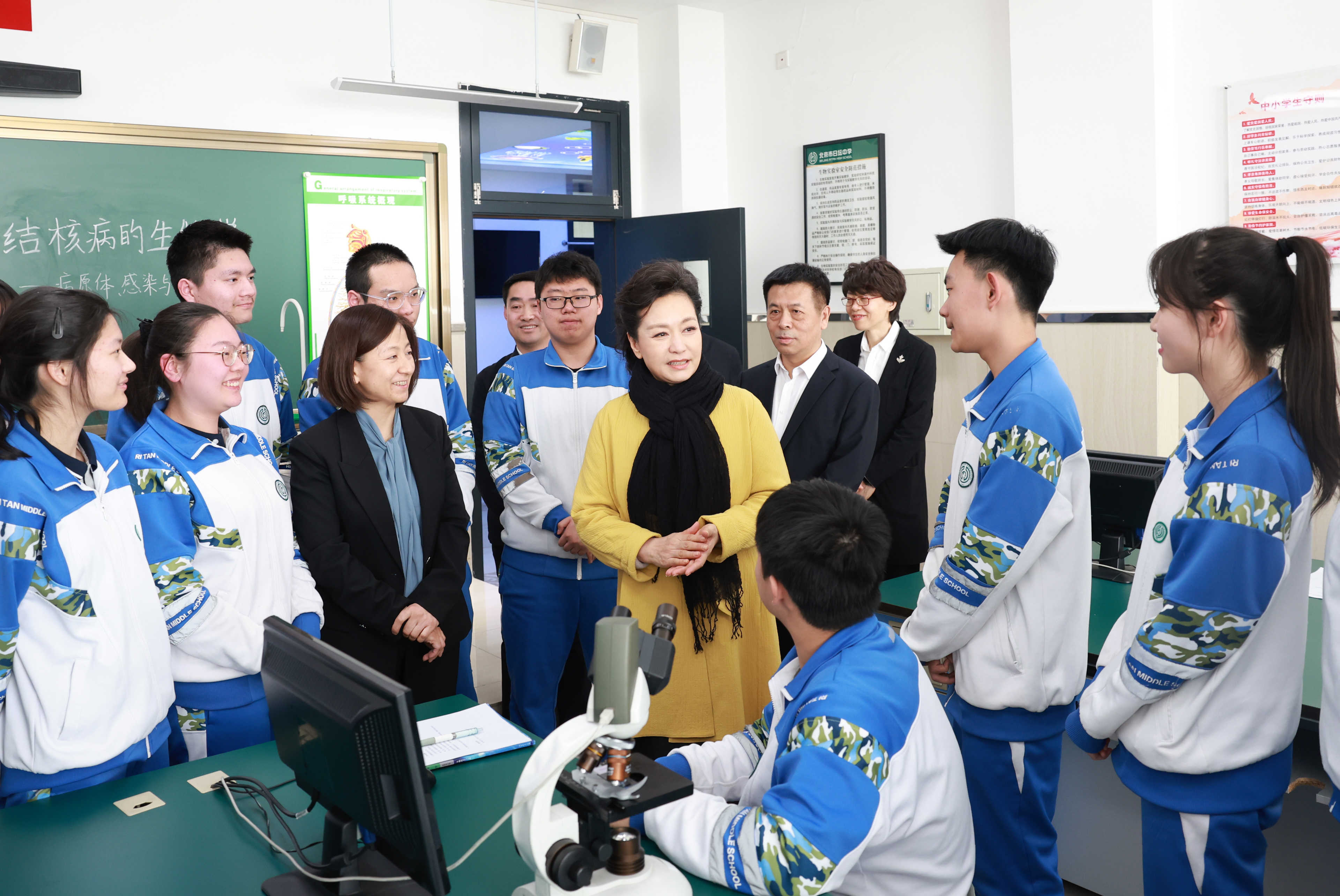 彭丽媛等还参观了学校围绕结核病防治主题开展的生物课教学、文创手工展、社会调研讨论、短视频录制等系列活动,同学校师生亲切交流。彭丽媛肯定同学们争当志愿者、积极参与结核病防治宣传的热情和社会责任感,鼓励大家加强体育锻炼,强健体魄,努力学习,提高科技和卫生素养,积极宣传结核病防治和健康知识,为终结结核病流行作出贡献。