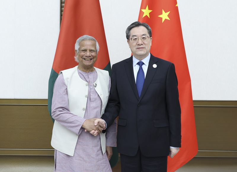 尤努斯表示,孟中友谊历久弥新,始终相互尊重、相互信任。孟方坚定恪守一个中国原则,愿同中方以建交50周年为契机,不断巩固两国关系,在共建“一带一路”框架下深化各领域合作。