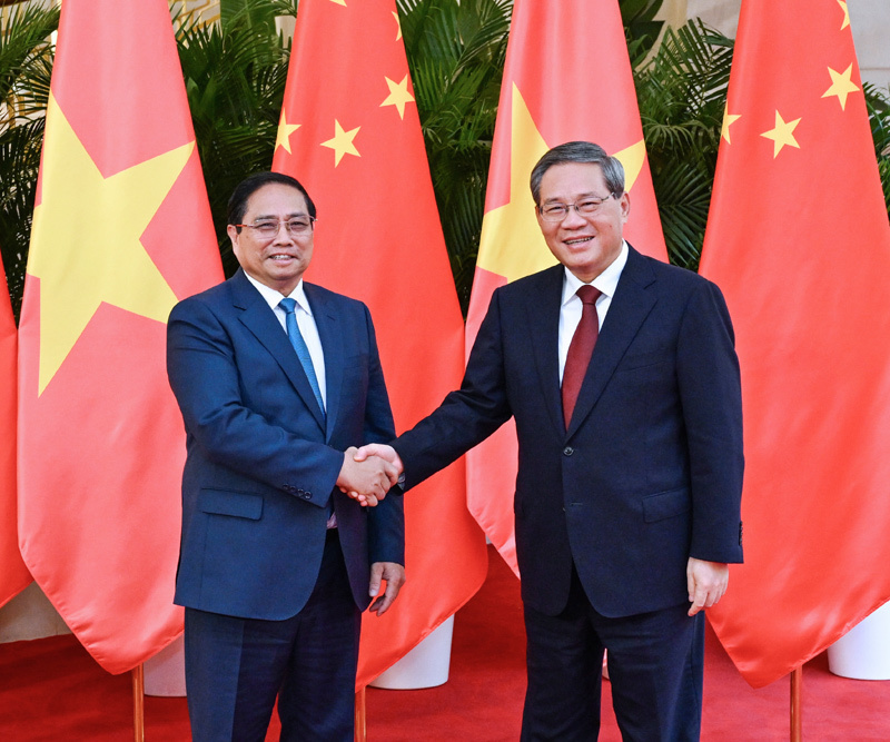 李强表示,今年是中越建交75周年。过去75年,中越始终相互支持、携手共进,“同志加兄弟”的深厚情谊历久弥坚、历久弥新。习近平总书记、国家主席4月成功访问越南以来,中越全面战略合作进一步向前推进。中方愿同越方继续落实好访问成果,把两党最高领导人擘画的中越关系发展宏伟蓝图,细化为两国现代化建设的“施工图”,转化为构建中越命运共同体的“实景图”,给两国人民带来更多福祉。
