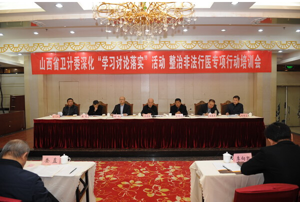 3月6日,省卫生计生委召开深化“学习讨论落实”整治非法行医专项行动培训会。省卫生计生委党组书记王进喜、副主任梁明虎出席。省卫生监督所相关人员及各市卫生局监督科(处)科(处)长,太原市卫生监督所分管所长,相关业务科长,各市管(太原市为市直市管)医疗机构主要负责人,委直相关医疗机构负责人、委管医疗机构主要负责人等200余人参加会议。