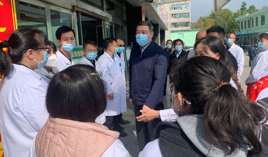 10月18日,省卫生健康委党组书记、主任武晋就县域医疗卫生一体化改革、拓展健康扶贫成果与乡村振兴有效衔接、做好常态化疫情防控和灾后防疫等工作赴晋中市左权县实地调研,看望慰问奋斗在疫情防控和下沉基层组团式帮扶的医务工作者。