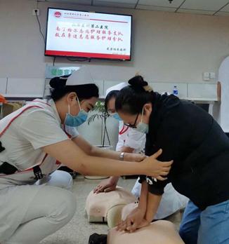 培训第一项由心肺复苏培训师苗志文老师详细为患者和家属讲解调整体位、判断颈动脉搏动,进行胸外心脏按压、口对口人工呼吸等急救方法,系统地讲解了心肺复苏法的操作要领,并按规范操作进行模拟演示。在培训师的指导下,现场实习学员和家属饶有兴趣地参加了实地演练,切身体会了整个急救过程,基本掌握了心肺复苏法的操作技能,大家纷纷表示受益匪浅。