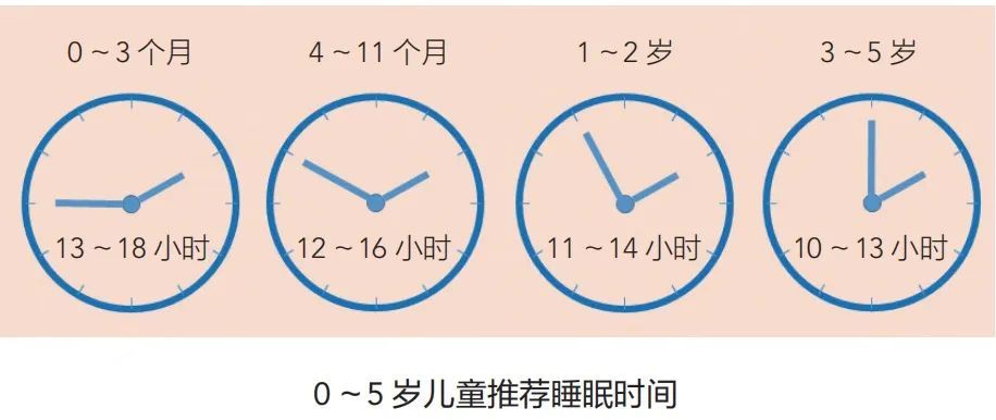 (1)学龄前儿童:《0岁~5岁儿童睡眠卫生指南》(WST579—2017)推荐0~5岁儿童每天总睡眠时间具体如下图。