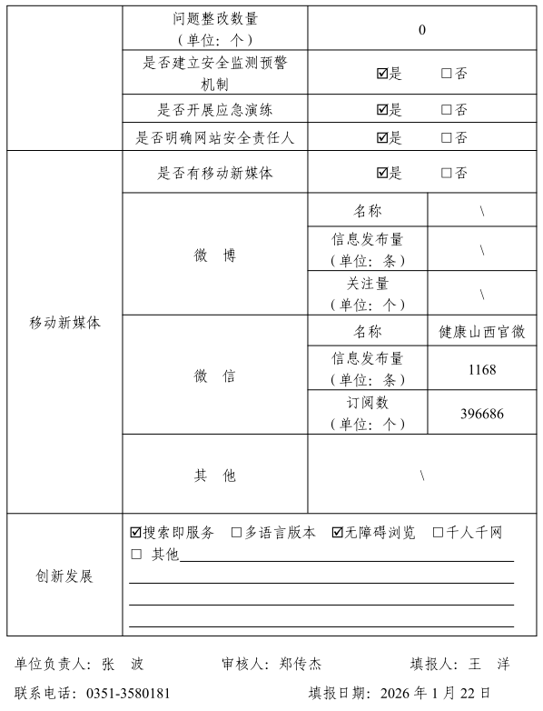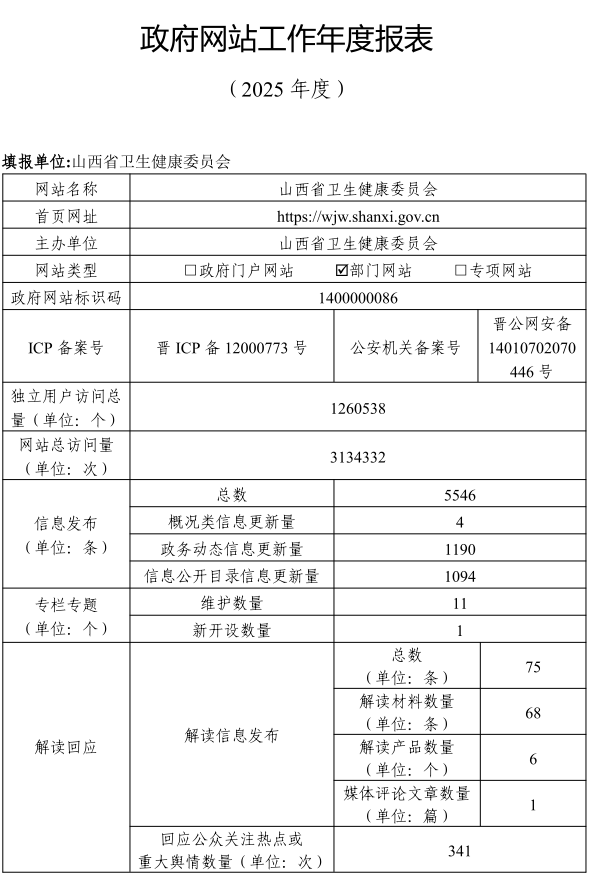 山西省卫生健康委员会2025年度政府网站工作年度报表