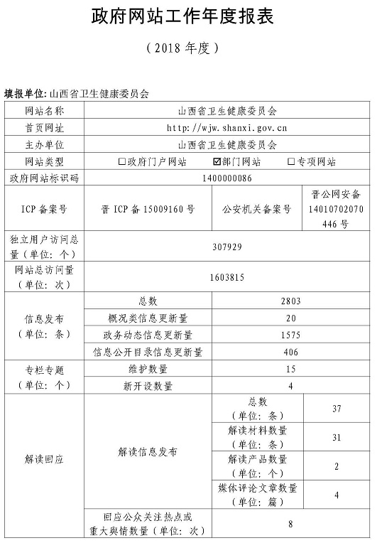 山西省卫生健康委员会2018年度政府网站工作年度报表