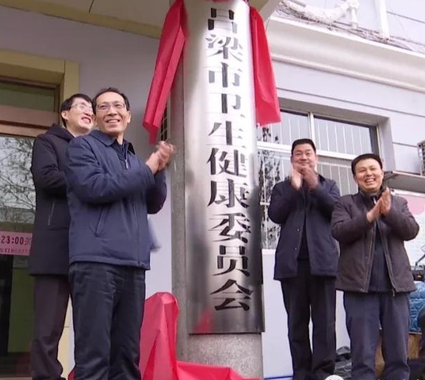 1月30日,吕梁市卫生健康委员会挂牌成立。市委常委、副市长郭震威出席揭牌仪式并与新组建的领导班子座谈。会议宣读了任命文件,贾誉任市卫生健康委员会党组书记、主任,温勇、武建忠、翟光华、李凤任卫生健康委员会党组成员、副主任。