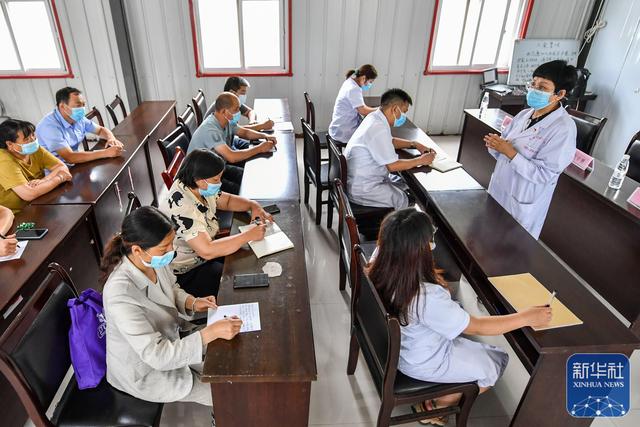 7月6日,长治医学院和平医疗集团“第一村医”壶关县工作队的医生赵甘婷(右一)在为大峡谷镇卫生院的村医们上课。