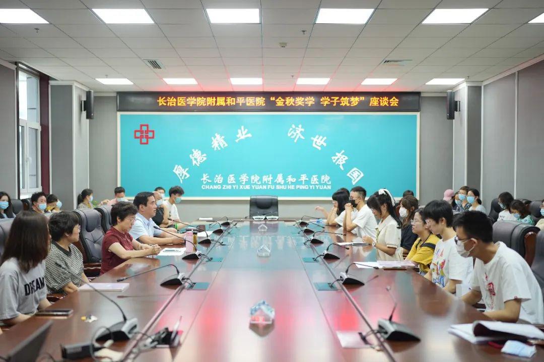 为关爱职工生活,关注职工子女成长,8月17日,长治医学院附属和平医院开展第二届“金秋奖学 学子筑梦”活动,对职工子女考取获得全国高等院校招生考试录取通知书(本科以上)的在岗职工子女予以奖励,以实际举措关心、支持医院职工下一代成才、成长。长治医学院附属和平医院党委书记尚进平,院长李红倬参加座谈会,活动由长治医学院附属和平医院党委副书记王玉芬主持。