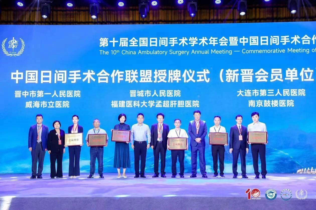 9月15日,第十届全国日间手术学术年会暨中国日间手术合作联盟成立十周年纪念大会在北京隆重召开,晋城市人民医院正式成为“中国日间手术合作联盟会员单位”。