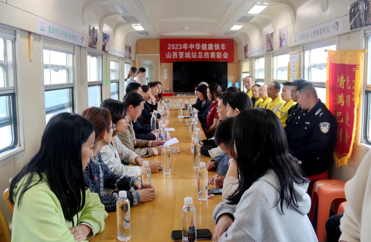 10月9日,2023年中华健康快车中石化光明号(山西晋城站)总结表彰会,在健康快车停靠点隆重举行。晋城市卫健委主任张俊威出席会议并讲话。中国石化销售山西晋城石油分公司相关领导,健康快车车长王悦真及车上医务人员,南村镇政府负责人,城区卫生健康和体育局一级主任科员陈静,泽州县晋铁陆通运销总公司负责人,金鼎路派出所负责人,935出租车爱心车队志愿者代表与眼科医院院长薛琴芹共30余人参加了表彰会。 会上,与会领导对参与健康快车工作的各方代表进行了表彰。 据了解,健康快车自8月1日驶入晋城至10月9日手术结束,停靠时间70天,共为晋城市1043名低收入家庭白内障患者免费实施了复明手术,圆满完成了2023年健康快车晋城站的工作任务。张俊威代表晋城市卫健委及实施复明手术的白内障患者及家庭,向健康快车全体医护人员,向全力保障本次惠民项目顺利实施的各部门,表示衷心的感谢和崇高的敬意。 张俊威指出,中石化光明号“健康快车”医护人员,精心组织筛查病人、细心设计手术方案、用心完成每台手术、贴心开展健康宣教,深入基层筛查义诊、辗转往返慰问困难群众,展示了医务工作者“敬佑生命、救死扶伤、甘于奉献、大爱无疆”的崇高职业精神和心系患者、情暖百姓的民本情怀;组织开展了“抗VEGF新适应证时代糖尿病视网膜病变治疗策略学术会议”,为晋城市基层眼科医师搭建起高水平的学术交流平台和重要的学习提升机会,通过实践经验和理论培训“传帮带”,为晋城市眼科领域培养了更多人才,真正留下了一列开不走的“健康快车”,极大地推动了晋城市治盲工作的发展和眼科水平的提高。 1043名晋城市白内障患者重获光明,2023年中华健康快车中石化光明号圆满完成了山西晋城站的工作任务,希望中华健康快车这列“光明车”“爱心车”“幸福车”越走越远、越办越好,为更多的患者送去光明和希望。