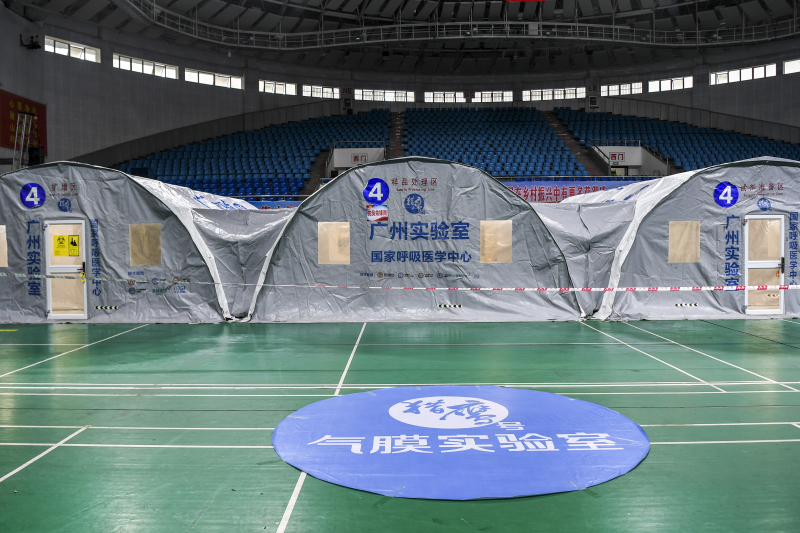 这是位于德保体育馆内的气膜实验室(2月13日摄)。