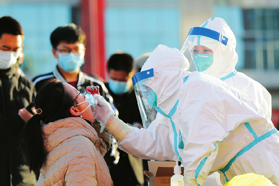 2月20日,晋中市太谷区市民在太谷文化广场接受核酸检测。