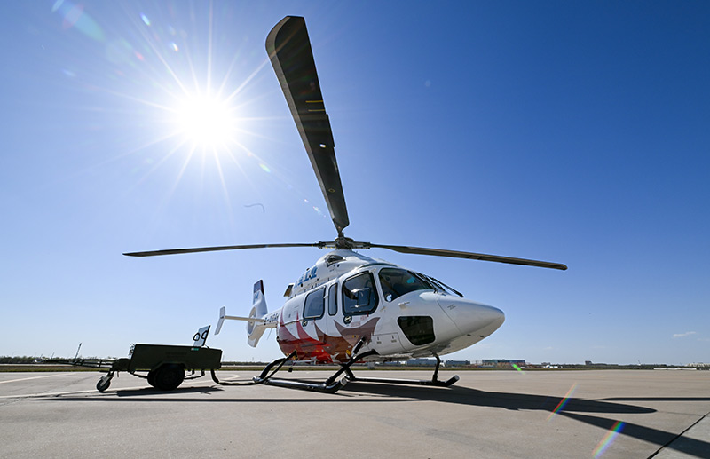 这是2023年4月7日在航空工业天津直升机有限责任公司停机坪拍摄的“吉祥鸟”AC332直升机。