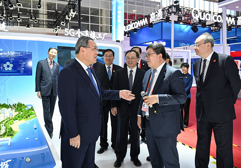 开幕式前,李强到链博会展馆巡馆并与有关企业负责人互动交流。