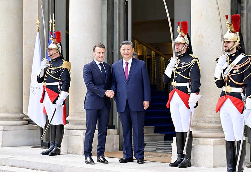 当地时间5月6日上午,国家主席习近平应邀在巴黎爱丽舍宫同法国总统马克龙、欧盟委员会主席冯德莱恩举行中法欧领导人三方会晤。