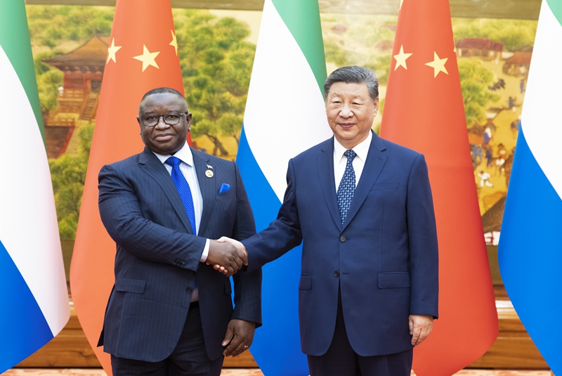 9月4日上午,国家主席习近平在北京人民大会堂会见来华出席中非合作论坛北京峰会的塞拉利昂总统比奥。 9月4日上午,国家主席习近平在北京人民大会堂会见来华出席中非合作论坛北京峰会的塞拉利昂总统比奥。 习近平指出,中非合作论坛由中非人民共商、共建、共享,不仅成为推进中非务实合作的有效机制,更成为南南合作的一面旗帜。中国共产党二十届三中全会对进一步全面深化改革、推进中国式现代化作出系统部署,将为包括非洲国家在内的世界各国带来更多机遇。相信在双方共同努力下,此次峰会将为推进非洲各国现代化、构建中非命运共同体作出新贡献。 习近平强调,中塞两国要继续在涉及彼此核心利益和重大关切问题上坚定站在一起。中方愿同塞方开展治国理政经验交流,加强发展战略对接,深化农业、基础设施、资源能源等领域合作,实施好经济和民生项目,不断增进民众福祉。中方愿同塞方在联合国等多边框架下加强协调配合,促进全球南方国家团结合作,倡导平等有序的世界多极化、普惠包容的经济全球化,共同维护非洲和广大发展中国家利益。 9月4日上午,国家主席习近平在北京人民大会堂会见来华出席中非合作论坛北京峰会的塞拉利昂总统比奥。 比奥感谢中方给予热情款待,使塞方代表团感觉宾至如归,期待这次中非合作论坛北京峰会取得圆满成功。比奥表示,塞中关系发展良好,我上次访华以来双边合作又取得显著进展。感谢中方为塞方经济发展提供支持,希望进一步密切农业、安全等领域合作。习近平主席提出系列重大全球倡议,为促进世界和平和发展作出重要贡献,展现出卓越领袖风范,塞方高度赞赏。感谢中方支持塞拉利昂履行联合国安理会轮值主席国职责,愿同中方加强国际多边协作。塞方坚定奉行一个中国政策,愿做中国值得信赖的朋友。 王毅参加会见。