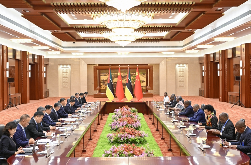 9月4日中午,国家主席习近平在北京人民大会堂会见来华出席中非合作论坛北京峰会的莫桑比克总统纽西。 9月4日中午,国家主席习近平在北京人民大会堂会见来华出席中非合作论坛北京峰会的莫桑比克总统纽西。 习近平指出,中国和莫桑比克始终风雨同舟、患难与共。近年来,我们多次会晤,引领两国政治互信不断深化,互利合作成果丰硕,中莫关系进入大有可为的新时期。明年将迎来中莫建交50周年,希望双方一道努力,弘扬传统友谊,深化互利合作,赋予中莫全面战略合作伙伴关系新的内涵。 习近平强调,中国共产党二十届三中全会就进一步全面深化改革、推进中国式现代化作出系统部署,展现了中国不断扩大对外开放的决心,将为中莫携手推进现代化提供新机遇。双方要做相互支持、相互信任的好兄弟,互利合作、共同发展的好伙伴,守望相助、团结协作的好朋友。中方愿同莫方拓展基础设施、能源矿产、农业、数字经济等领域合作,助力莫桑比克工业化和经济多元化。欢迎莫方用好此次中非合作论坛北京峰会成果,扩大对华经贸投资合作,推动两国友好薪火相传。中方支持莫方打击恐怖主义、维护国家稳定,愿同莫方在联合国等多边平台密切合作。 9月4日中午,国家主席习近平在北京人民大会堂会见来华出席中非合作论坛北京峰会的莫桑比克总统纽西。 纽西表示,祝贺中共二十届三中全会成功召开,中共有关进一步全面深化改革、推进中国式现代化的战略部署充分体现了习近平主席的远见卓识。莫方坚定恪守一个中国原则,支持中方在台湾、南海等核心利益问题上的立场,支持中方“一国两制”政策,反对在人权等问题上对中国无端指责。希望同中方深化经贸、农业、互联互通、安全等领域合作。莫方高度赞赏习近平主席提出的系列全球倡议以及为改善全球治理提出的重大主张,愿同中方在多边议题上加大相互支持,推动构建更加公平合理的国际秩序。预祝此次中非合作论坛北京峰会取得圆满成功。 峰会期间,中莫双方签署木豆、夏威夷果和腰果输华、新闻媒体等领域多项双边合作文件。 王毅参加会见。