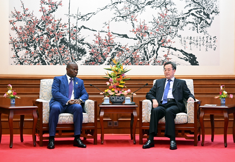 9月5日,中共中央政治局常委、国务院副总理丁薛祥在北京会见来华出席中非合作论坛北京峰会的加蓬总统恩圭马。