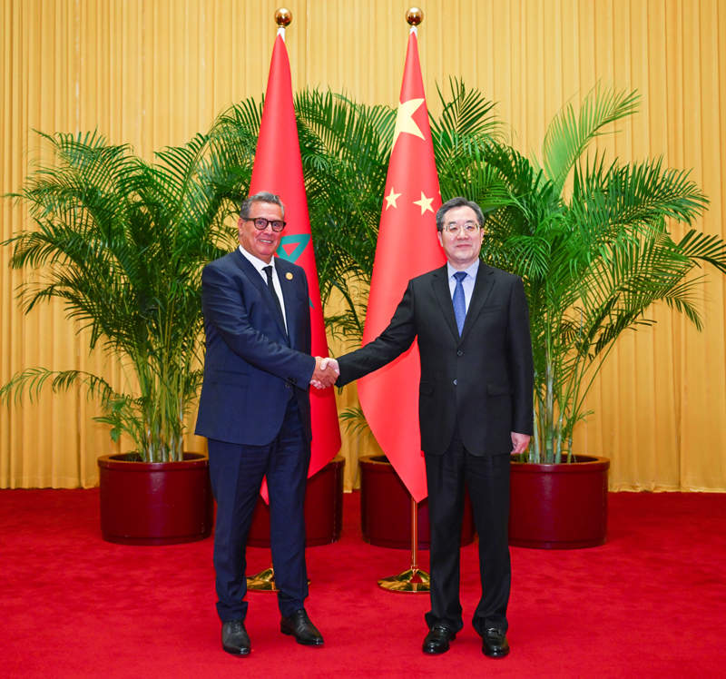 9月5日,中共中央政治局常委、国务院副总理丁薛祥在北京会见来华出席中非合作论坛北京峰会的摩洛哥首相阿赫努什。