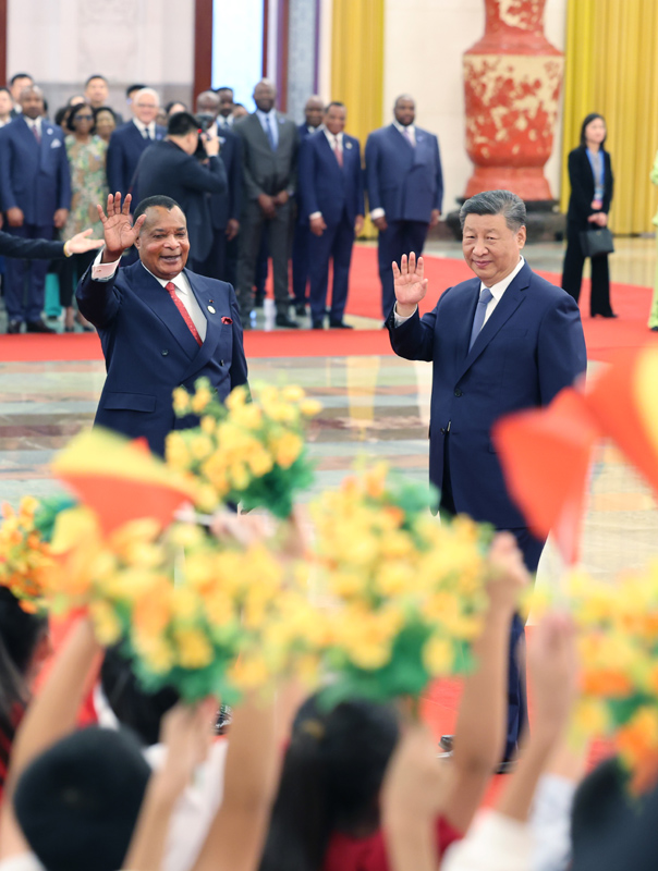 9月6日上午,国家主席习近平在北京人民大会堂同来华出席中非合作论坛北京峰会并进行国事访问的刚果(布)总统萨苏举行会谈。 会谈前,习近平和夫人彭丽媛在人民大会堂北大厅为萨苏和夫人安托瓦内特举行欢迎仪式。这是习近平和彭丽媛同萨苏和安托瓦内特合影。 9月6日上午,国家主席习近平在北京人民大会堂同来华出席中非合作论坛北京峰会并进行国事访问的刚果(布)总统萨苏举行会谈。 9月6日上午,国家主席习近平在北京人民大会堂同来华出席中非合作论坛北京峰会并进行国事访问的刚果(布)总统萨苏举行会谈。 这是会谈前,习近平在人民大会堂北大厅为萨苏举行欢迎仪式。 习近平祝贺刚果(布)接任中非合作论坛非方共同主席国,赞赏萨苏为此次中非合作论坛北京峰会取得成功所作重要贡献。习近平指出,发展同非洲国家团结合作是中国外交政策的重要基石,2013年我访问非洲期间提出真实亲诚对非政策理念和正确义利观,这成为中国发展同所有发展中国家关系的指导原则。此次论坛北京峰会成果将惠及非洲所有同中国建交的国家,有力推动中非合作迈向新境界,对引领中非关系发展和中非实现现代化具有深远意义。中方愿同刚果(布)发挥好共同主席国的引领作用,共同落实好峰会成果,确保中非合作论坛这块“金字招牌”越擦越亮,向国际社会传递中非携手推进新时代全天候中非命运共同体建设的坚定决心。 9月6日上午,国家主席习近平在北京人民大会堂同来华出席中非合作论坛北京峰会并进行国事访问的刚果(布)总统萨苏举行会谈。 这是会谈前,习近平在人民大会堂北大厅为萨苏举行欢迎仪式。 习近平指出,今年是中刚建交60周年。中刚情谊坚如磐石,根源在于两国高度的政治互信、共同的理念追求、坚定的相互支持。中非关系迈上一个新的征程,中刚友好合作也要迎来更加辉煌的下一个60年。双方要巩固好、发展好中刚传统友谊,为中非关系塑造典范。 9月6日上午,国家主席习近平在北京人民大会堂同来华出席中非合作论坛北京峰会并进行国事访问的刚果(布)总统萨苏举行会谈。 这是会谈前,习近平在人民大会堂北大厅为萨苏举行欢迎仪式。 习近平建议中刚两国担当好“四个角色”,即做构建命运共同体的旗手、共建“一带一路”的先锋、民心相通的典范、团结协作的榜样。习近平强调,中方赞赏刚方在所有涉及中国核心利益和重大关切问题上给予坚定、明确支持,愿同刚方深化治国理政经验交流,密切各领域各层级往来,共同探索现代化发展路径。中方支持刚方发展多元化经济,鼓励中国企业参与刚果(布)重要基础设施和区域联通项目建设,开展农业、数字经济、绿色发展等合作,深化人文交流,推动两国人民主动参与中刚友好事业。中方愿同刚方弘扬和平共处五项原则,加强在全球治理等领域国际合作,为广大发展中国家实现发展振兴创造更加有利的国际环境。 9月6日上午,国家主席习近平在北京人民大会堂同来华出席中非合作论坛北京峰会并进行国事访问的刚果(布)总统萨苏举行会谈。 这是会谈前,习近平在人民大会堂北大厅为萨苏举行欢迎仪式。 萨苏表示,60年前,我曾作为刚果(布)首批青年访华。这些年来多次访华,见证了中国不断实现令人赞叹的经济科技发展,中国已经成为世界强大国家,中国人民倍感自豪,刚果(布)人民深感钦佩、衷心祝贺。刚中建交60年来,两国关系始终保持良好发展。很多中国企业参与刚果(布)渔业、矿业、能源、基础设施等领域项目建设,促进了刚果(布)经济社会发展。刚果(布)愿同中方不断巩固友谊,密切各领域务实合作。刚方坚定恪守一个中国原则,支持中国政府维护国家主权、安全和领土完整,这一立场不会发生任何动摇。感谢中方支持刚果(布)接任中非合作论坛非方共同主席国,祝贺中方成功主办此次中非合作论坛北京峰会。习近平主席昨天宣布中非携手推进现代化“十大伙伴行动”,把非中团结合作提升至新高度。感谢中方为非洲发展提供大力支持,刚果(布)愿同中方密切配合,落实此次峰会成果,推动构建高水平非中命运共同体。 9月6日上午,国家主席习近平在北京人民大会堂同来华出席中非合作论坛北京峰会并进行国事访问的刚果(布)总统萨苏举行会谈。 会谈后,两国元首共同见证签署关于共建“一带一路”合作规划、共同发展经济伙伴关系、绿色低碳发展、住房和城市建设、投资和经济合作、出入境动植物检疫、茯苓输华、数字经济、人力资源、新闻媒体等领域多项双边合作文件。 双方发表《中华人民共和国和刚果共和国关于深化全面战略合作伙伴关系、构建高水平中刚命运共同体的联合声明》。 9月6日上午,国家主席习近平在北京人民大会堂同来华出席中非合作论坛北京峰会并进行国事访问的刚果(布)总统萨苏举行会谈。 这是会谈后,两国元首共同见证签署多项双边合作文件。 会谈前,习近平和夫人彭丽媛在人民大会堂北大厅为萨苏和夫人安托瓦内特举行欢迎仪式。 王毅参加上述活动。