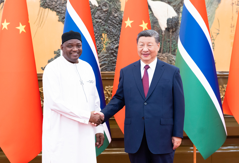 习近平强调,很高兴中方援建和合作的项目改善了冈比亚人民的生活。此次中非合作论坛北京峰会在工业、农业、基础设施建设等领域推出了一系列合作新举措。中方愿同冈方一道,以落实此次峰会成果为契机,推动中冈合作取得更多成果,助力冈比亚经济增长、民生改善。中方将继续向冈方派遣医疗队,支持冈比亚中文教育发展,鼓励更多冈比亚青年来华交流,增进民心相通。祝贺冈比亚成功举办伊斯兰合作组织第十五届首脑会议,中方愿同冈比亚和伊斯兰合作组织深化合作。