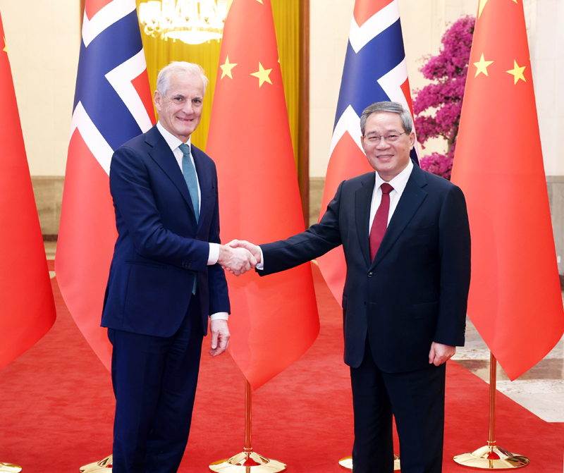 国务院总理李强9月10日上午在北京人民大会堂同来华进行正式访问的挪威首相斯特勒举行会谈。 李强表示,今年是中挪建交70周年。当前中挪关系保持健康稳定发展。习近平主席昨天同首相先生举行会晤,深刻总结两国建交70年经验,就进一步深化双边关系作出战略规划。站在新的历史起点上,中方愿同挪方一道落实好两国领导人重要共识,不断巩固政治互信,坚持相互尊重、平等相待、互利共赢,加强各层级、各领域交流,推动两国关系与务实合作稳步迈上新台阶,为两国人民带来更多福祉,为促进全球和平发展事业作出更大贡献。 9月10日上午,国务院总理李强在北京人民大会堂同来华进行正式访问的挪威首相斯特勒举行会谈。 李强指出,中方愿同挪方推动经贸合作扩容提质,进一步释放贸易、金融等领域合作潜能。中方欢迎挪威加大投资中国市场,愿同挪方一道努力,为两国企业赴彼此国家投资兴业营造更为优化的营商环境。双方要持续深化文化、艺术、教育、旅游、体育等领域合作,便利人员往来。中方愿同挪方携手推进绿色发展,加强传统产业绿色转型、绿色新兴产业培育等领域合作,密切国际协作,推动全球气候与环境治理朝着更加公平合理、合作共赢的方向发展,推进实现联合国2030年可持续发展议程,携手构建人类命运共同体。 斯特勒表示,我多次访华,见证并高度评价中国取得的显著发展成就。挪中关系保持友好和富有活力的发展势头,挪方坚持奉行一个中国政策,愿做中方可信赖的伙伴,期待以两国建交70周年为契机,加强各层级交往对话,巩固相互友谊与信任,持续拓展双方在经贸、投资、海洋、绿色经济、科技创新、北极等领域务实合作,深化人文交流。挪方愿同中方在国际地区问题上密切沟通协调,推进气候变化等领域合作,共同应对全球性挑战。挪方一贯主张自由公平贸易,维护多边贸易体制,支持欧中加强对话合作。 会谈后,两国领导人共同签署《中华人民共和国和挪威王国关于建立绿色转型对话的联合声明》,并见证签署绿色低碳发展等领域双边合作文件。 会谈前,李强在人民大会堂北大厅为斯特勒举行欢迎仪式。 吴政隆参加上述活动。
