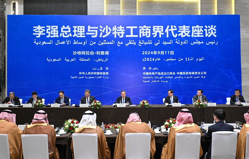 当地时间9月11日上午,国务院总理李强在利雅得同沙特工商界代表座谈交流。