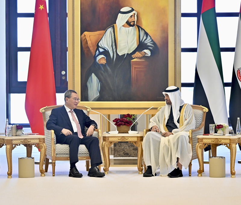当地时间9月12日上午,国务院总理李强在阿布扎比祖国宫会见阿联酋总统穆罕默德。 李强首先转达习近平主席对穆罕默德总统的亲切问候。李强表示,近年来,中阿在政治上坚定相互支持,务实合作走在中国同中东国家合作前列。今年5月,习近平主席同总统殿下举行会晤,为中阿关系深化发展作出战略规划。中方愿同阿方一道,落实两国元首重要共识,推动中阿关系与合作持续取得新进展,收获更多实实在在的成果。 当地时间9月12日上午,国务院总理李强在阿布扎比祖国宫会见阿联酋总统穆罕默德。 李强指出,中方愿同阿方加强沟通对接,发挥好中阿投资合作高级别委员会机制作用,进一步扩大双边贸易规模,深化投资、油气等领域合作,拓展新能源、电动汽车、高端制造、生物医药、数字经济等领域合作,共同做好对新兴产业、未来产业的前瞻布局,培育更多新的经济增长点。希望阿方继续为中国企业在阿投资兴业提供良好营商环境。中方愿同阿联酋等海合会国家继续携手努力,推动尽早完成中海自贸协定谈判。 穆罕默德请李强转达对习近平主席的诚挚问候。穆罕默德表示,今年是阿中建交40周年,两国全方位友好关系达到前所未有的水平,成为国与国关系的典范。由衷感谢习主席高度重视并为促进阿中关系作出战略引领。阿方恪守一个中国原则,愿做中方可靠的合作伙伴和高质量共建“一带一路”的战略伙伴。期待进一步密切两国各层级交往,用好双边投资合作高级别委员会机制,深入推进经贸、投资、能源、卫生、教育等领域务实合作,持续丰富两国全面战略伙伴关系内涵。阿方愿加强同中方在国际多边事务中的沟通协作,促进世界和平、稳定与发展。