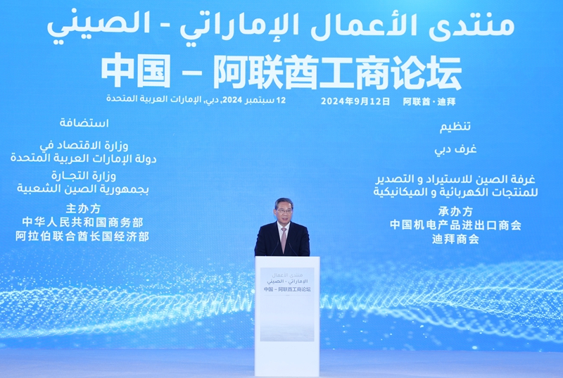当地时间9月12日下午,国务院总理李强在迪拜出席中国-阿联酋工商论坛并致辞。