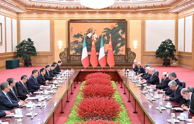 11月8日下午,国家主席习近平在北京人民大会堂同来华进行国事访问的意大利总统马塔雷拉举行会谈。 11月8日下午,国家主席习近平在北京人民大会堂同来华进行国事访问的意大利总统马塔雷拉举行会谈。 习近平指出,今年是中意建立全面战略伙伴关系20周年。双方发表了加强全面战略伙伴关系的行动计划,一致同意秉持历史悠久的丝路精神,推动双边关系进入发展新阶段。当今世界正在经历百年未有之大变局,中国和意大利作为两大文明古国,应该弘扬开放包容、兼容并蓄的传统,推动国际社会以对话化解分歧、以合作超越冲突,携手构建和合共生的美好世界。 11月8日下午,国家主席习近平在北京人民大会堂同来华进行国事访问的意大利总统马塔雷拉举行会谈。 这是习近平在人民大会堂北大厅为马塔雷拉举行欢迎仪式。 11月8日下午,国家主席习近平在北京人民大会堂同来华进行国事访问的意大利总统马塔雷拉举行会谈。 这是习近平在人民大会堂北大厅为马塔雷拉举行欢迎仪式。 习近平强调,互尊互信、互利共赢应该始终成为中意关系最鲜明的底色。双方应该充分发挥中意政府委员会和各领域对话机制作用,加强交往,夯实互信,继续理解和支持彼此核心利益和重大关切,做相互支持的战略伙伴。中意文化合作富有成果和活力,双方要继续密切人文交流,落实好新一轮文化合作执行计划,深化文化艺术、文物保护、经典著作互译、旅游、教育等领域合作,将文化遗产地合作打造为中意人文交流新亮点。双方要支持语言教学和青少年交流,共同培育更多新时代的马可·波罗。双方要坚持做相互成就的合作伙伴。中方愿扩大进口意大利优质产品,支持两国企业相互投资,继续推进科技环保、清洁能源、航天等领域合作。 11月8日下午,国家主席习近平在北京人民大会堂同来华进行国事访问的意大利总统马塔雷拉举行会谈。 这是习近平在人民大会堂北大厅为马塔雷拉举行欢迎仪式。 习近平指出,当今世界正在经历深刻变化,中欧作为两大和平、建设性力量,坚持战略沟通、开放合作、交流互鉴的正确方向,有利于双方,有利于世界。中国将欧洲作为实现中国式现代化的重要伙伴,双方应该坚持合作共赢,妥善管控分歧,让中欧关系展现应有的成熟和稳定。中方愿同欧方加强合作应对全球性挑战,希望意方为此发挥积极作用。 11月8日下午,国家主席习近平在北京人民大会堂同来华进行国事访问的意大利总统马塔雷拉举行会谈。 这是习近平在人民大会堂北大厅为马塔雷拉举行欢迎仪式。 马塔雷拉表示,我对2017年访华以及2019年接待习近平主席访意的情景记忆犹新。今年是马可·波罗逝世700周年,马可·波罗同中国的渊源是意中友好源远流长、两大文明交相辉映的缩影。当今世界正在经历深刻演变,人类社会需要加强团结互助,实现和谐共处。意中应该进一步深化文化、教育、语言教学、遗产地结好等人文领域交流合作,为推动东西方文明交流互鉴、促进人类文明进步作出新的贡献。意方坚定恪守一个中国原则,始终将中国作为重要合作伙伴,期待同中方一道,以庆祝意中建立全面战略伙伴关系20周年为契机,加强经贸、科技等领域合作,推动两国关系迈上新的高度。意方在许多重大问题上同中方立场相近,都反对保护主义,倡导相互开放,主张加强建设性沟通与团结合作,共同应对各种挑战。意方愿同中方密切多边协作,为促进世界和平与稳定贡献意中两大文明的智慧。 11月8日下午,国家主席习近平在北京人民大会堂同来华进行国事访问的意大利总统马塔雷拉举行会谈。 会谈后,两国元首共同见证签署关于文化、科技、教育、世界遗产地结好等领域多项双边合作文件。 会谈前,习近平在人民大会堂北大厅为马塔雷拉举行欢迎仪式。 天安门广场鸣放21响礼炮,礼兵列队致敬。两国元首登上检阅台,军乐团奏中意两国国歌。马塔雷拉在习近平陪同下检阅中国人民解放军仪仗队,并观看分列式。 11月8日下午,国家主席习近平在北京人民大会堂同来华进行国事访问的意大利总统马塔雷拉举行会谈。 这是习近平和夫人彭丽媛同马塔雷拉和女儿劳拉合影。 当晚,习近平主席和夫人彭丽媛在人民大会堂金色大厅为马塔雷拉总统和女儿劳拉举行欢迎宴会。 王毅参加上述活动。