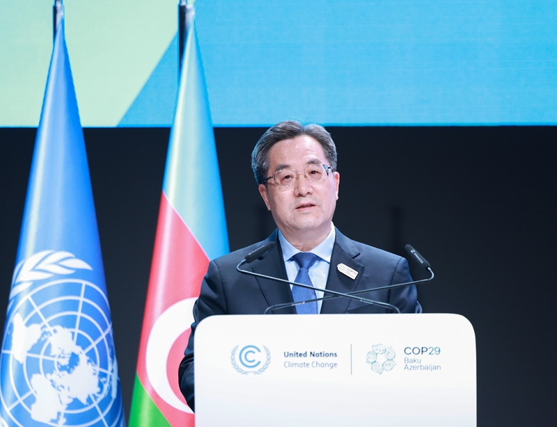 11月12日至13日,习近平主席特别代表、中共中央政治局常委、国务院副总理丁薛祥在阿塞拜疆首都巴库出席世界领导人气候行动峰会并发表致辞。