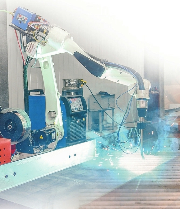 山西中部智造科技有限公司内,智能机器人在进行焊接作业。