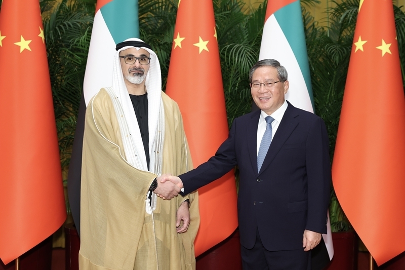 李强表示,中国和阿联酋是全面战略伙伴,两国传统友谊深厚,在涉及彼此核心利益问题上长期相互支持。近年来,在习近平主席和穆罕默德总统战略引领下,中阿关系持续深化发展,各领域合作成果丰硕,为两国人民带来了实实在在的利益。中方愿同阿方继续在共同发展的道路上结伴前行,加强沟通协调,筑牢政治互信,推动中阿关系与合作不断迈上新台阶,取得更多实际成果,更好实现互利共赢。