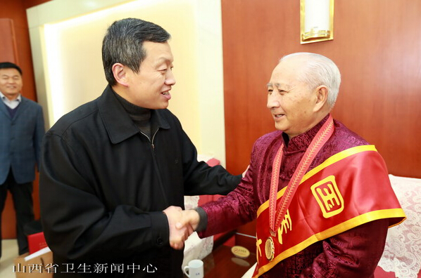 11月10日,我委召开国医大师吕景山先进事迹暨学术思想报告会。会前,省政府副省长张建欣、省政协副主席、省卫生计生委主任卫小春接见了国医大师吕景山。 今年已80岁高龄的吕景山教授师从“京城四大名医”之一的施今墨先生、“北京十大名医”祝谌予教授,从医60年,曾在“医疗援非”期间,用精深的针灸之术治好了喀麦隆总理的顽疾。在学术方面,他系统总结施今墨先生“对药”学术思想和临床经验,填补了宋朝以来药对配伍专辑的空白。吕老还首次提出针灸对穴理论,并独创了“无痛进针,同步行针”手法,而其“来者不拒”的行医理念,更是广大医者的典范。作为全国第三、四批中医药专家学术经验指导老师,注重培养学生的临床技能,毫不保留地将自己的学术思想和临床经验传授给学生。他传道授业、桃李满天下,为国家培养了大批优秀中医药人才。2011年,“吕景山全国名老中医药专家传承工作室”成立,使他的学术思想得到总结、继承和提升。2014年10月30日,人力资源和社会保障部、国家卫生计生委和国家中医药管理局共同在人民大会堂举办第二届国医大师表彰大会,授予全国30位老中医药专家国医大师称号,我省吕景山教授获此殊荣。 报告会上,张建欣指出,吕景山不仅是山西中医界的楷模,更是卫生计生系统的典范。她要求医务工作者以吕景山为榜样,见贤思齐,敬业修德,勇创一流,甘于奉献,为进一步提升我省医疗卫生服务质量和水平,保障全省经济社会发展做出新的更大贡献。省政协副主席、省卫生计生委主任卫小春传达第二届国医大师表彰大会上中共中央政治局委员、国务院副总理刘延东,国家卫生计生委主任李斌的重要讲话精神。省卫生计生委党组书记王进喜宣读了山西省人社厅、省卫生计生委联合下发的《关于开展向吕景山国医大师学习的决定》。会议由省卫生计生委副主任李书凯主持,省政府副秘书长巨宪华、省公务员局副局长边少先等领导以及卫生计生委机关各处(室、局)负责人、各市卫生局分管中医药工作的副局长和中医(医政)科长、委直中医单位党政一把手、分管院长及办公室主任、委直综合医院分管院长、中医科主任、中医药优才、领军人才和中医医院部分医务人员出席会议。