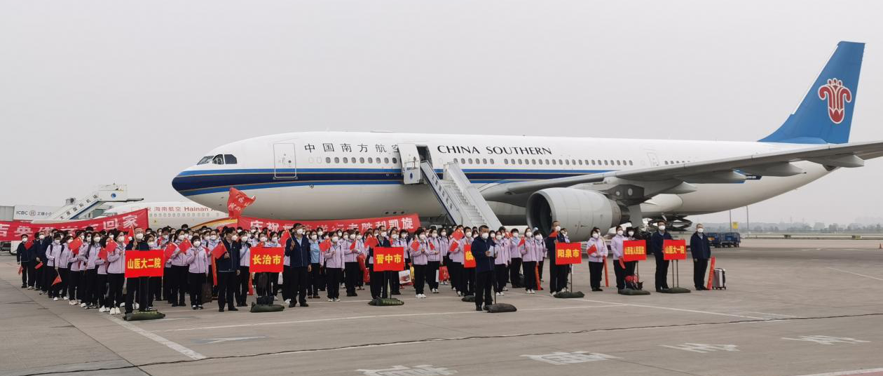4月29日,山西医科大学第二医院支援吉林移动方舱核酸检测队圆满完成医疗援助任务,平安凯旋。山西医科大学第二医院党委书记李保和党委副书记、院长赵斌前往太原武宿机场迎接队员回家。山西省援吉移动方舱核酸检测队队长、山西医科大学第二医院医务处处长刘虎子代表医疗队作工作汇报。 随着飞机徐徐驶入停机坪,机场打出两道水门,以最高礼遇迎接队员凯旋。随后龙城铁骑开道,队员们乘坐大巴前往指定酒店,进行为期14天的休整。 3月17日,在吉林省疫情防控最艰难、最吃劲的关键时刻,山西医科大学第二医院29名移动方舱核酸检测队员加入山西省援吉核酸检测队,星夜驰援,奔赴1440余公里外的吉林省长春市支援一线抗疫工作,和核酸检测队一起出发的还有山西医科大学第二医院的两个核酸检测移动方舱。 在支援长春抗疫的43天时间里,山西医科大学第二医院援吉核酸检测队先后战斗在长春市新冠肺炎疫情重灾区九台区和宽城区。作为山西省援吉核酸检测医疗队队长单位,山西医科大学第二医院医疗队员勇于担当,率先垂范,充分发挥山西医科大学第二医院人无惧困难,敢于拼搏,敬业奉献的精神,与兄弟医院支援队员齐心协力、密切配合,全身心地投入到抗击疫情的战斗中。他们通过“三班倒”的制度,24小时不间断地开展核酸检测工作,全面保障检测工作及时有效、安全有序地开展。 援吉期间,山西省援吉核酸检测队完成核酸检测61万管,单日核酸检测量最高达5万支,以高效、精准的核酸检测结果,为吉林省长春市疫情研判和管控措施的制定提供了有力的依据,为吉林省的疫情形势好转贡献了一份重要的山西力量。他们与吉林人民共担风雨,共渡难关,携手筑牢人民群众健康安全的坚实防线,向党和人民递交了一份满意的答卷。(文\王红 王晔华 图\李少刚)